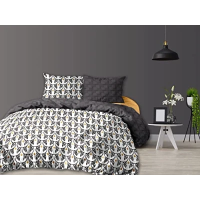 CALITEX 3 Piece Bedding Set 260 x 240 cm Charleston, 100% Cotton, Black,