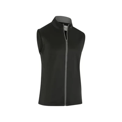 GOLF BODY WARMER - Lightweight soft thermal fabric keeps you warm without adding bulk. FLEXIBLE FIT - Stretch fabric allows a full range of motion for unrestricted swings while on the golf course or at the driving range. STYLISH & FUNCTIONAL - Full-zip front and mock neck collar provide easy layering and a sleek look, features an embroidered Tour logo on the left collar and a large chevron logo on the back. EASY CASE - Part of the Weather Series, designed for comfort and performance in changing conditions - ideal for chilly Autumn or Spring mornings, or layering up in the Winter. CARE AND SIZES - Available in S, M, L, XL, XXL and XXXL. This men's golf vest is easy care and machine washable and available in Caviar Black and Peacoat Blue. 100% Polyester.