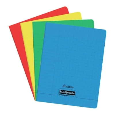 1 RANDOM COLOUR NOTEBOOK: blue, red, yellow or green. TRANSPARENT POLYPRO COVER: handling-resistant, tear-proof and waterproof. No need for notebook protectors PAPER: 90 g/m² fine vellum white, superior strength and opacity SPECIAL TRIColour SETTING: for learning to write. 3 mm double line with vertical line spacing and margin, for improved writing comfort. SMALL SIZE: school size, fits easily in the schoolbag MADE IN FRANCE and PEFC CERTIFIED: for sustainable forest management