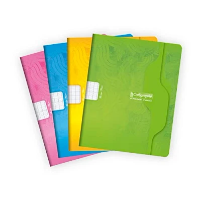 SET OF 25 NOTEBOOKS: ideal for school lists, schools and communities. SMALL SIZE: school size, easy to store in schoolbag COVER: offset card. AVAILABLE COLOURS: pink, green, yellow and sky blue. Random delivery STITCHED BINDING: the best value for money. Pages are bound together with staples. PAPER: 70 g/m² fine vellum white, the best value for money. TRICOLOR RULING: red margin, purple lines and blue line spacing, for improved writing comfort. MADE IN FRANCE and PEFC CERTIFIED: for sustainable forest management
