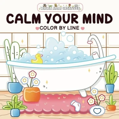 Calm Your Mind Color By Line: Coloring Book for Children, Teens and Adults Featuring Cute Illustrations with Pre Colored Outlines Relaxation Stress Relief