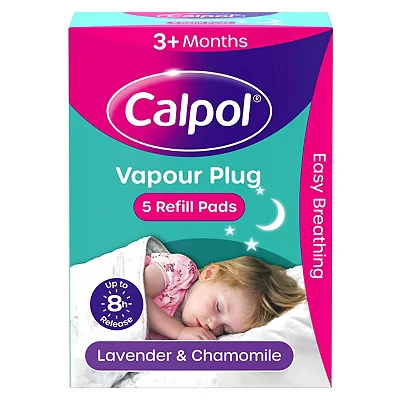 Why Buy Me? Calpol Vapour Plug Lavender & Chamomile Refill Pads are designed to help your child breathe more easily and sleep peacefully through the night. Enriched with a calming blend of lavender, chamomile, menthol, camphor and eucalyptus oils, these non-medicated pads release soothing vapours for up to 8 hours, easing breathing and creating a relaxing atmosphere. The gentle orange nightlight provides a reassuring glow in the dark without disturbing sleep, while the simple plug-in system and quick-to-replace pads make it effortless to use. Clinically tested for safety and sensitivity, they offer reliable comfort and peace of mind for both you and your child throughout the night. Brand: Calpol Product Type: Medical Devices Product Sub-type: Humidifiers / Vaporizers Age: 3+ months Details: • Each pack contains 5 refill pads. • Each pad releases soothing vapours for up to 8 hours. • Enriched with lavender, chamomile, menthol, camphor and eucalyptus oils to ease breathing and provide comfort. • Non-medicinal; safe to use alongside CALPOL® medicines. • Designed for use with the Calpol Vapour Plug & Nightlight device. • The gentle soft orange nightlight activates in darkness to provide a reassuring glow. • Simple plug-in system allows quick and easy pad replacement. • Dermatologically tested to ensure safe use. • Pads are single-use and should be replaced after every 8 hours of use.