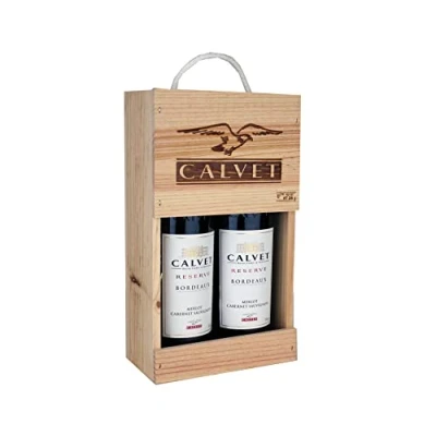 Calvet wine Gift 2 bottles of red Réserve, Bordeaux in wooden box (2 x 0.75 L)
