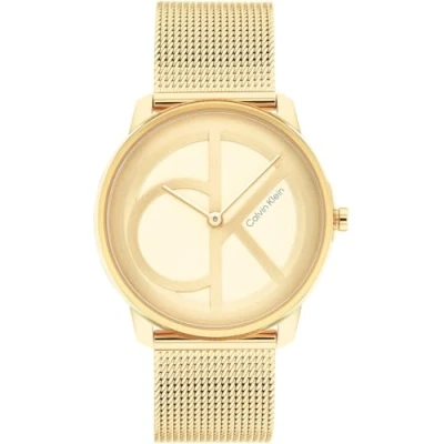 Calvin Klein Analogue Quartz Watch for Men and Women Iconic Mesh 35MM Collection with Gold Colored Stainless Steel Bracelet 25200034