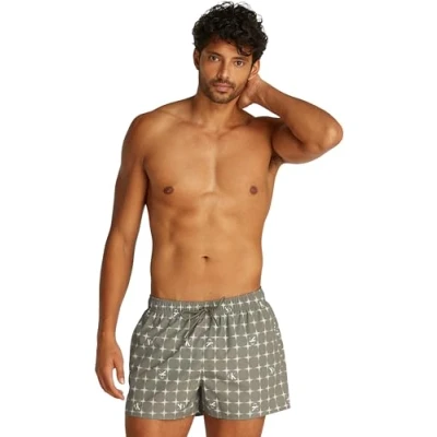 Calvin Klein CK Jeans Men Short Drawstring Print Boardshorts, Green (Diffused Logo Grid AOP), L