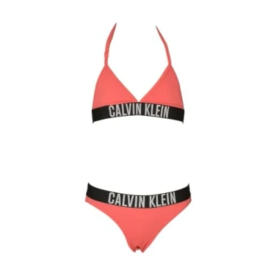 Calvin Klein Girls’ Triangle Bikini Set with Logo, Red (Deep Crimson Fruit), 12 14 Years