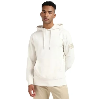 Calvin Klein Jeans Badge Hoodie Sweatshirt, Men's, Size: XS, Ivory
