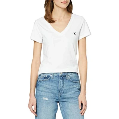 Calvin Klein Jeans Embroidery V NECK Basic Tshirt, Women's, Size: XXL, Bright white