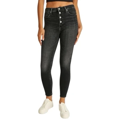 Calvin Klein Jeans HIGH RISE Super Skinny Ankle Fit, Women's, Size: 34, Denim black