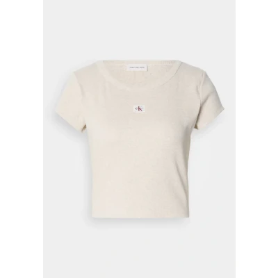 Calvin Klein Jeans Label BABY TEE Basic Tshirt, Women's, Size: Small, Vanilla heather