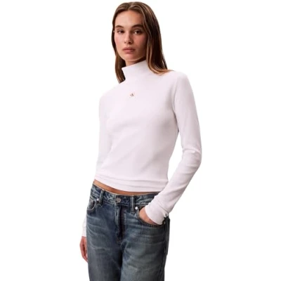 Calvin Klein Jeans Label Turtleneck Long sleeved top, Women's, Size: Medium, Brilliant white