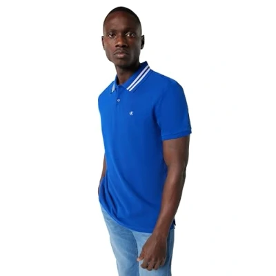 Calvin Klein Jeans Monogram Tipped Polo shirt, Men's, Size: Small, Chase blue