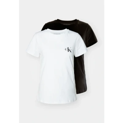 Calvin Klein Jeans Monologo SLIM TEE 2 PACK Print Tshirt, Women's, Size: XXS, Black/bright white