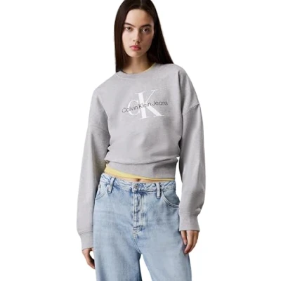 Calvin Klein Jeans Monologo Sweatshirt, Women's, Size: XS, Heroic grey heather