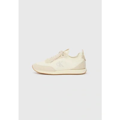 Calvin Klein Jeans Retro Runner Laceup Trainers marshmallow/eggshell Sale at Zalando UK | Upper material: leather and textile/Lining: textile/Sole: synthetics/Insole: textile | Sale order at Zalando UK! Size: 10.5. Color: Marshmallow/eggshell. Pattern: plain.