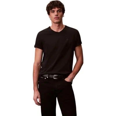 Calvin Klein Jeans Smooth Solid Vneck TEE Basic Tshirt, Men's, Size: XS, Black
