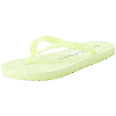 Calvin Klein Jeans Women Flip Flops Beach Sandal Pool Slides, Yellow (Lime Sorbet/Bright White), 39