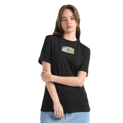 Calvin Klein Jeans Women Illuminated Box Logo Slim Tee S/S T Shirts Black, S