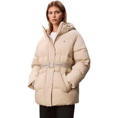 Calvin Klein Jeans Women's BELTED MIDWEIGHT PUFFER LV047D507G Jackets, Brown (Island Fossil), XXS