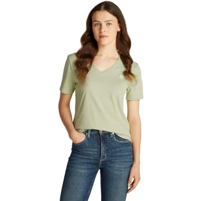 Calvin Klein Jeans Women's CK Embro Badge V Neck TEE J20J222560 S/S Knit Tops, Celadon Green, XS