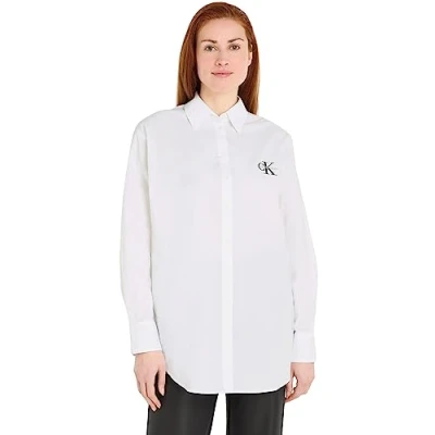 Calvin Klein Jeans Women's Loose MONOLOGO Shirt J20J221866 Woven Tops, White (Bright White), S