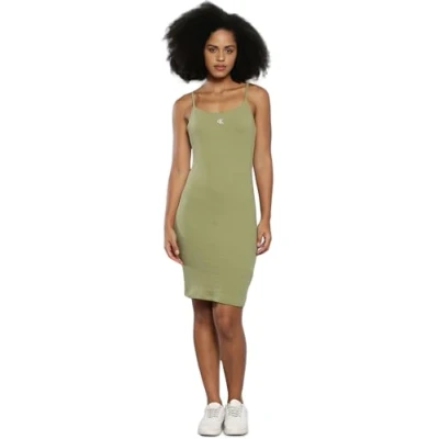 Calvin Klein Jeans Women's SLUB Rib Dress Bodycon Dresses, Dark Juniper, S
