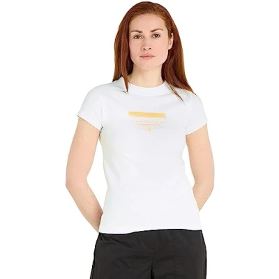 Calvin Klein Jeans Women's Stripe Logo Modern Straight TEE J20J222039 S/S T Shirts, White (Bright White), M