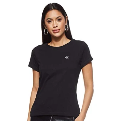 Calvin Klein Jeans Women Short Sleeve T Shirt Ck Embroidery Crew Neck, Black (Ck Black), XXL