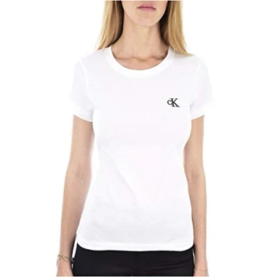 Calvin Klein Jeans Women Short Sleeve T Shirt Ck Embroidery Crew Neck, White (Bright White), 3XL