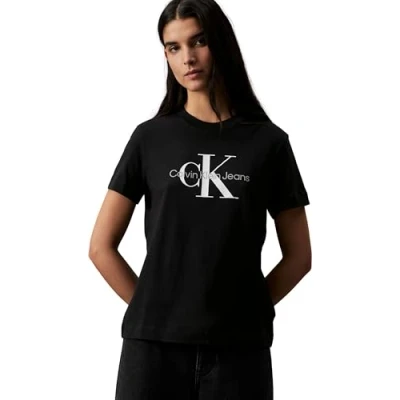 Calvin Klein Jeans Women Short Sleeve T Shirt Core Monologo Crew Neck, Black (Ck Black), XL
