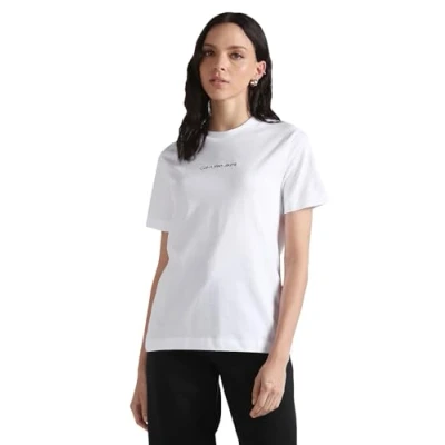 Calvin Klein Jeans Women Short Sleeve T Shirt Institutional Straight Crew Neck, White (Bright White), L