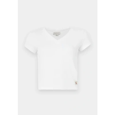 ZalandoCalvin Klein Jeans Woven Label V NECK TEE Basic Tshirt brilliant white Sale at Zalando UK | Outer fabric material: 5% elastane, 95% cotton | Sale order at Zalando UK! Size: Medium. Color: Brilliant white. Pattern: plain.