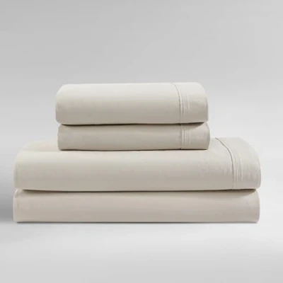 CALVIN KLEIN HOME: A collection of timeless and versatile modern pieces that will be your go-to bedding accessories, season after season. QUALITY: Crafted from 100% cotton for exceptional comfort, our bedding features a soft and relaxed feel with a 200-thread count percale weave, prewashed for added softness. The breathable material is perfect for hot sleepers, ensuring a cool night's rest. The elegant 1.75" Z-hem finish adds a touch of sophistication, while the fitted sheets include long and short side labels for easy setup. EASY CARE: To get the most out of your sheet set, machine wash cold and tumble dry low. SET INCLUDES: (1) King Flat Sheet- 102"L x 112"W, (1) Elasticized Fitted Sheet- 78"W x 80"L, (2) King Pillowcases- 21"L x 42"W; 18" Pocket Depth EXPLORE MORE COLLECTIONS: Discover the full assortment of bedding and home decor in our Brand Store—curated for timeless style and everyday comfort.