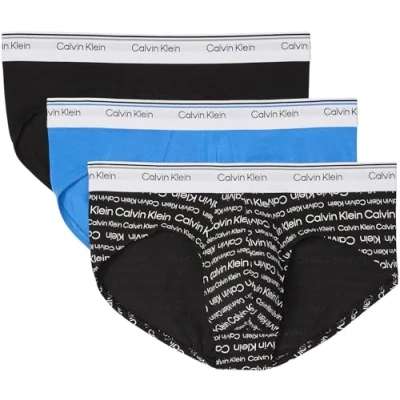 Calvin Klein Men’s 3 Pack Balance Hipster Briefs with Logo Waistband, Multicolor (Black/Wrapped Logo_Black/Regatta), XL