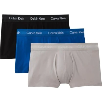 Calvin Klein Men’s 3 Pack Low Rise Trunks, Pink (CLASSIC BLUE/PORPOISE/BLACK), XS