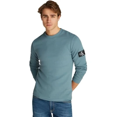 Calvin Klein Men’s Badge Cotton Waffle Long Sleeve Top, Turquoise (Trooper), XXS