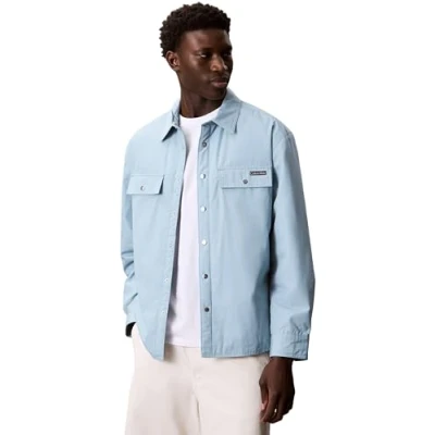 Calvin Klein Men’s Cotton Filled Shirt Jacket with Press Stud Fastenings, Blue (Stone Blue), L