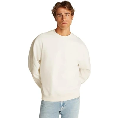 Calvin Klein Men’s Crew Neck Logo Tape Relaxed Fit Sweatshirt, Beige (Tofu), L