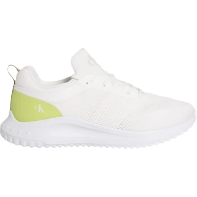 Calvin Klein Men’s EVA Tech Knit Runner Trainers with Logo, White (Bright White//Wild Lime/Rubber), 10