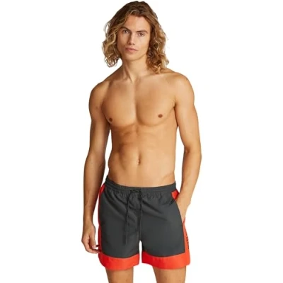 Calvin Klein Men’s Medium Drawstring Swim Shorts with Logo, Red (Flaming Chili), L