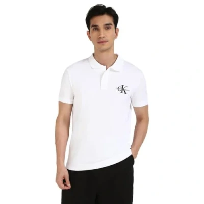 Calvin Klein Men’s Monologo Regular Fit Short Sleeve Polo Shirt, White (Bright White), S