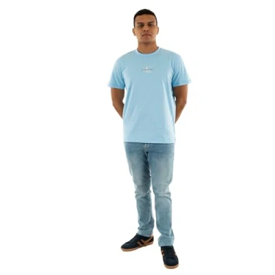 Calvin Klein Men's Monologo Short Sleeve Round Neck T Shirt, Blue (Blue Bell), XS