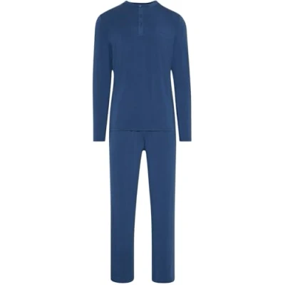 Calvin Klein Men’s Pyjama Set with Button Placket, Blue (Dark Denim), M