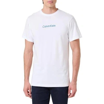 Calvin Klein Men’s Short Sleeve Crew Neck T Shirt, White (Classic W/Deep Lagoon Logo), M