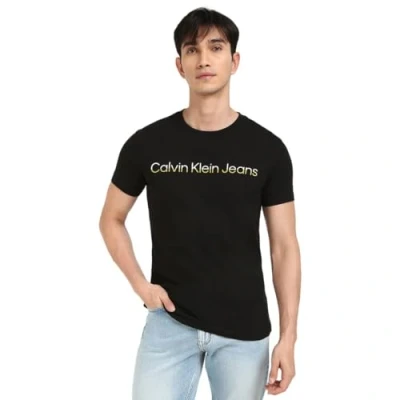 Calvin Klein Men’s Short Sleeve Round Neck Two Tone Institutional T shirt, Black (Ck Black), S