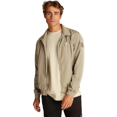Calvin Klein Men’s Unpadded Harrington Windbreaker with Stand Collar, Beige (Stone Gray), L