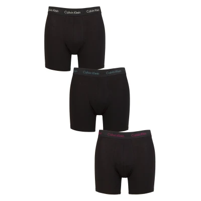 Offering great leg coverage, particularly for guys with larger thighs, Calvin Klein Cotton Stretch Longer Leg Boxers can help avoid any rubbing or chafing, with the added material length between the legs providing more protection than other underwear styles. The cotton rich stretch jersey gives a great fit. These boxed triple packed Calvin Klein Cotton Stretch Longer Leg Boxers feature shaped double layer pouches, and assorted contrast colour elastic waistbands with Calvin Klein branding.