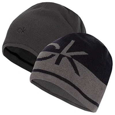 Calvin Klein Mens CK Reversible Knit Beanie Hat Navy/Charcoal One Size