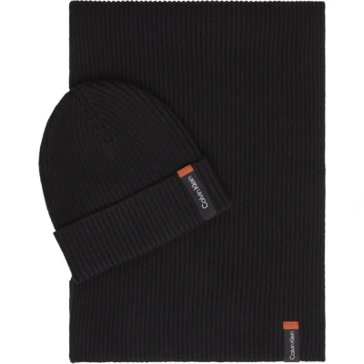 Calvin Klein Mens Classic Cotton Rib Scarf & Beanie Set (Ck Black) One Size