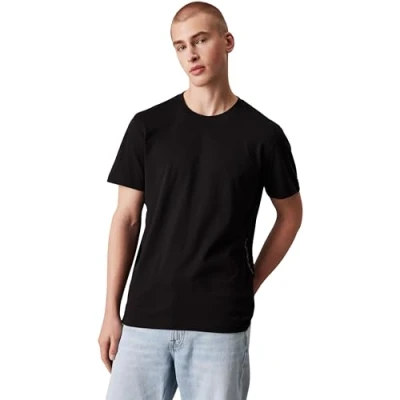 Calvin Klein Men's Logo Tape Round Neck Short Sleeve T Shirt, Black (Ck Black), S
